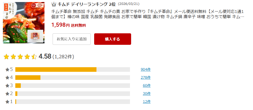 「キムチ革命」を買うなら楽天市場がおすすめです。